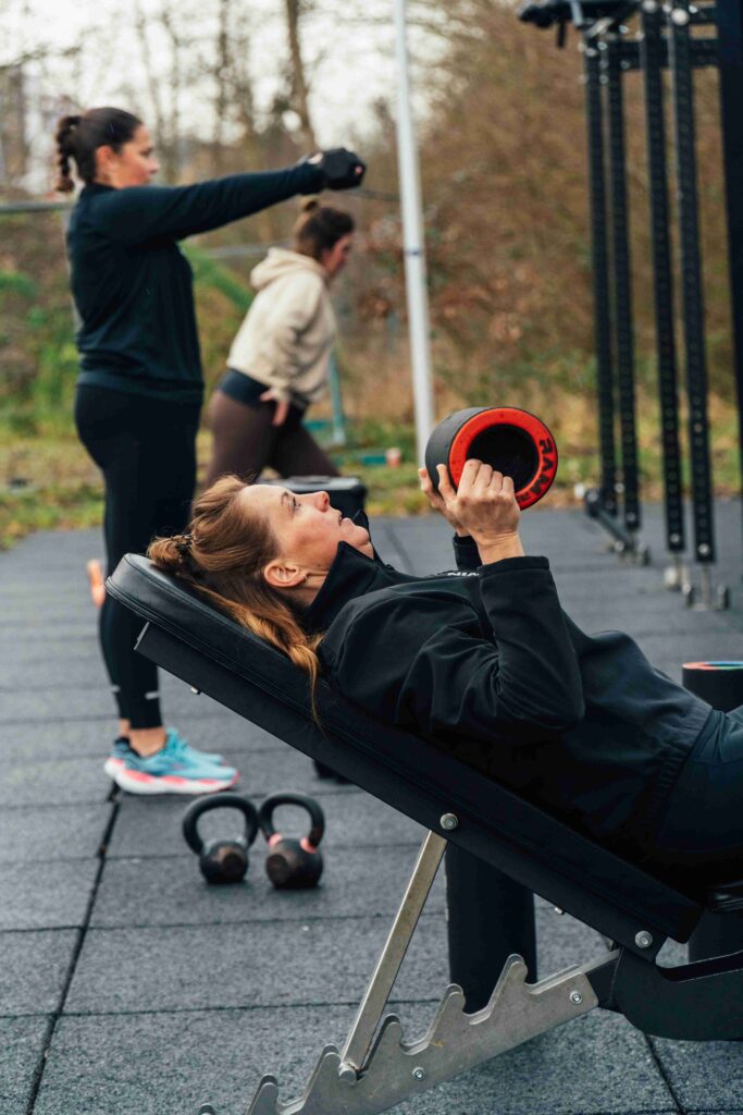 Het kenmerk van de Functional Strength training is dat we werken met oefeningen die niet al te complex zijn, zodat het tempo hoog kan blijven. Dit stelt jou in staat om de intensiteit op peil te houden en een efficiënte training te voltooien.